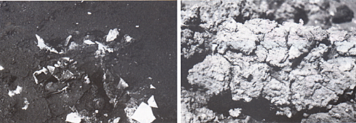 LEFT: An on-site photograph of tank bottom materials generated from crude oil storage tanks at an Exxon facility near Vanderbilt, TX., in 1992.  |
